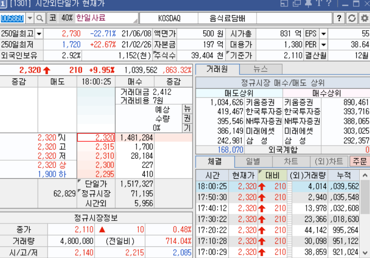 그래서 그런지 시간외단일가에서 상한가에 마감을 하여서 내일 시장에도